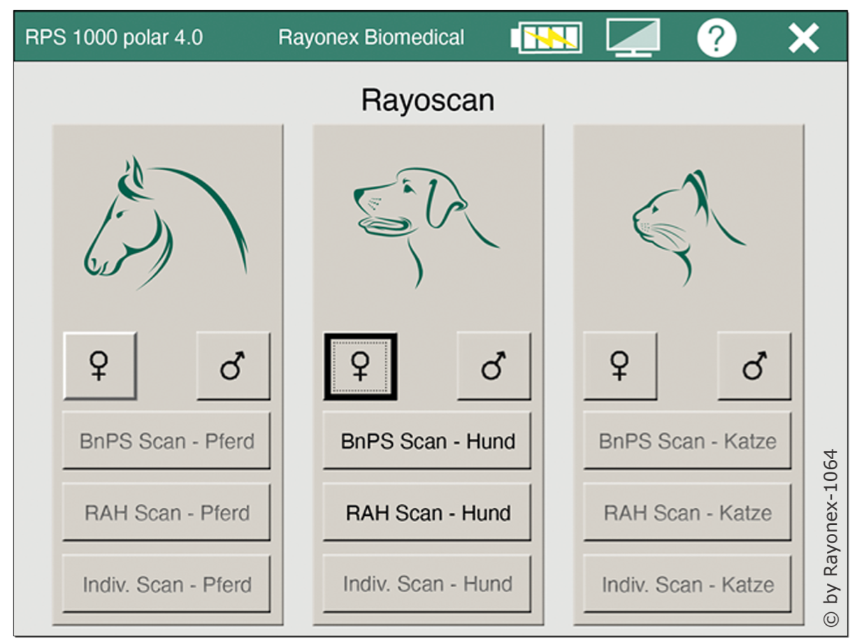 “兽医用瑞优扫描”是“瑞优康PS 1000极化型4.0兽医用”生物能量仪的高端软件模块,透过自动化心电图分析,进行能量检测,提供兽医为马、狗或猫拟定一个全面的原因导向能量平衡方案。