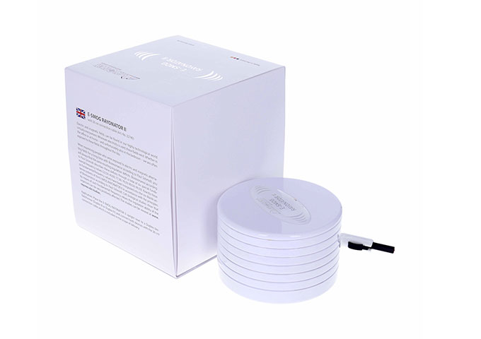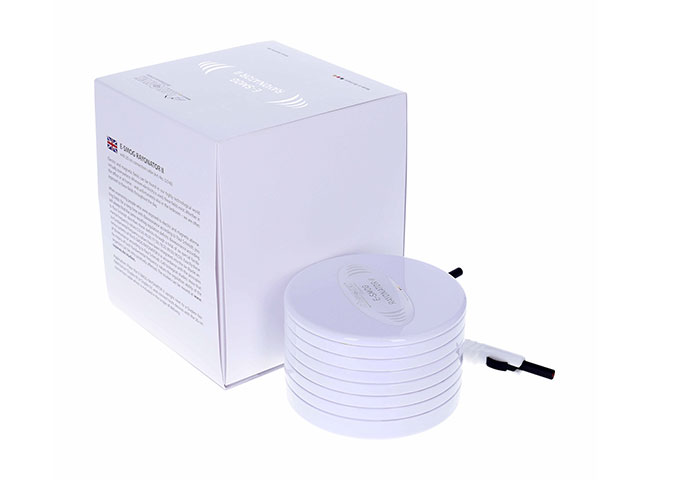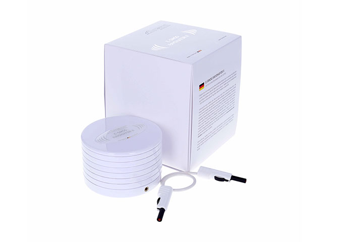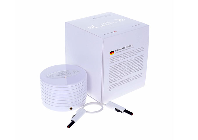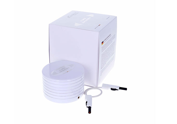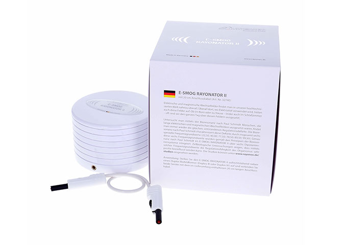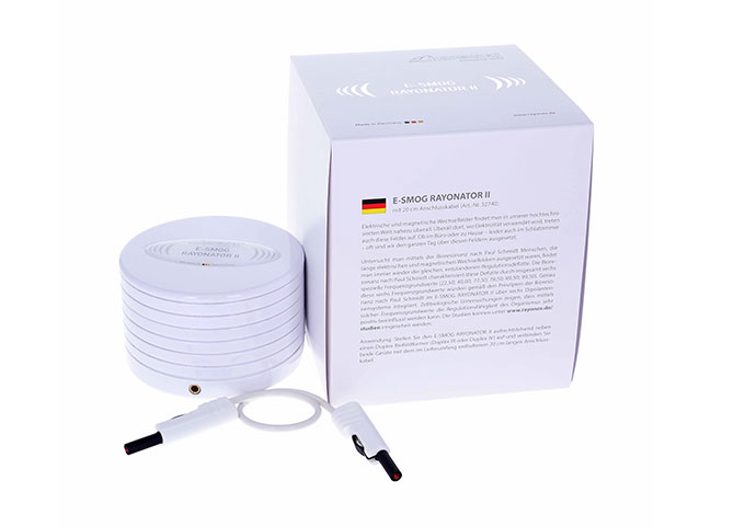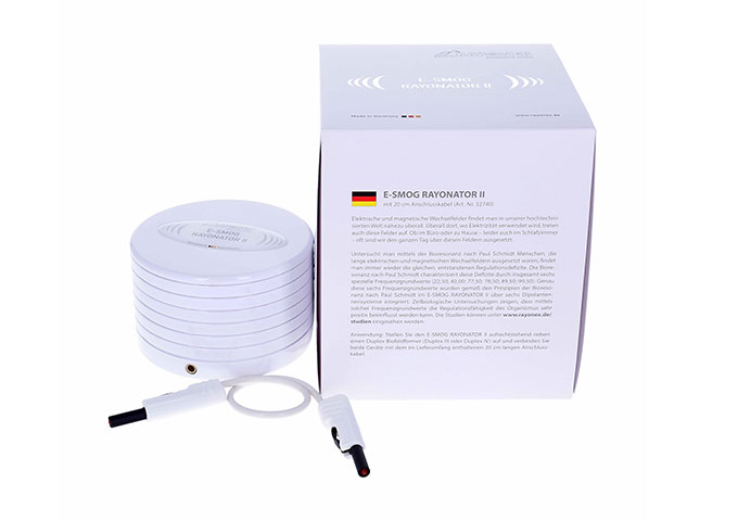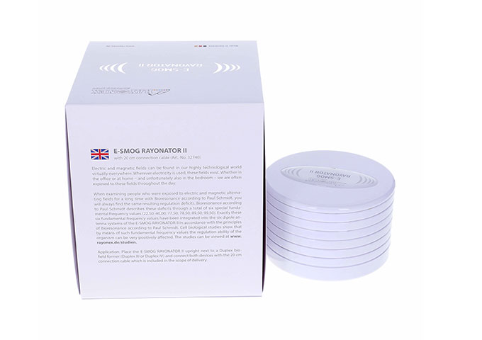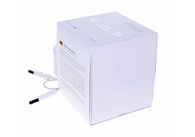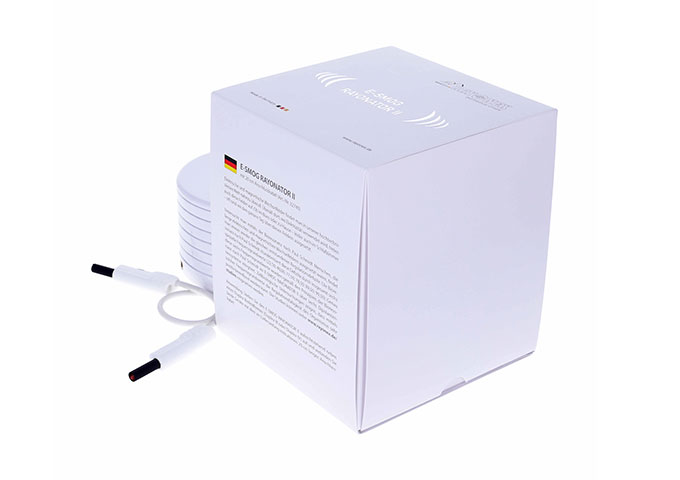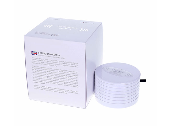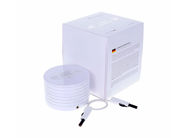 使用说明:将“电磁辐射调和器II”正面朝上放置在“Duplex IV”频率共振仪旁边,并用随附的0.2公尺长的连接电线连接两设备。