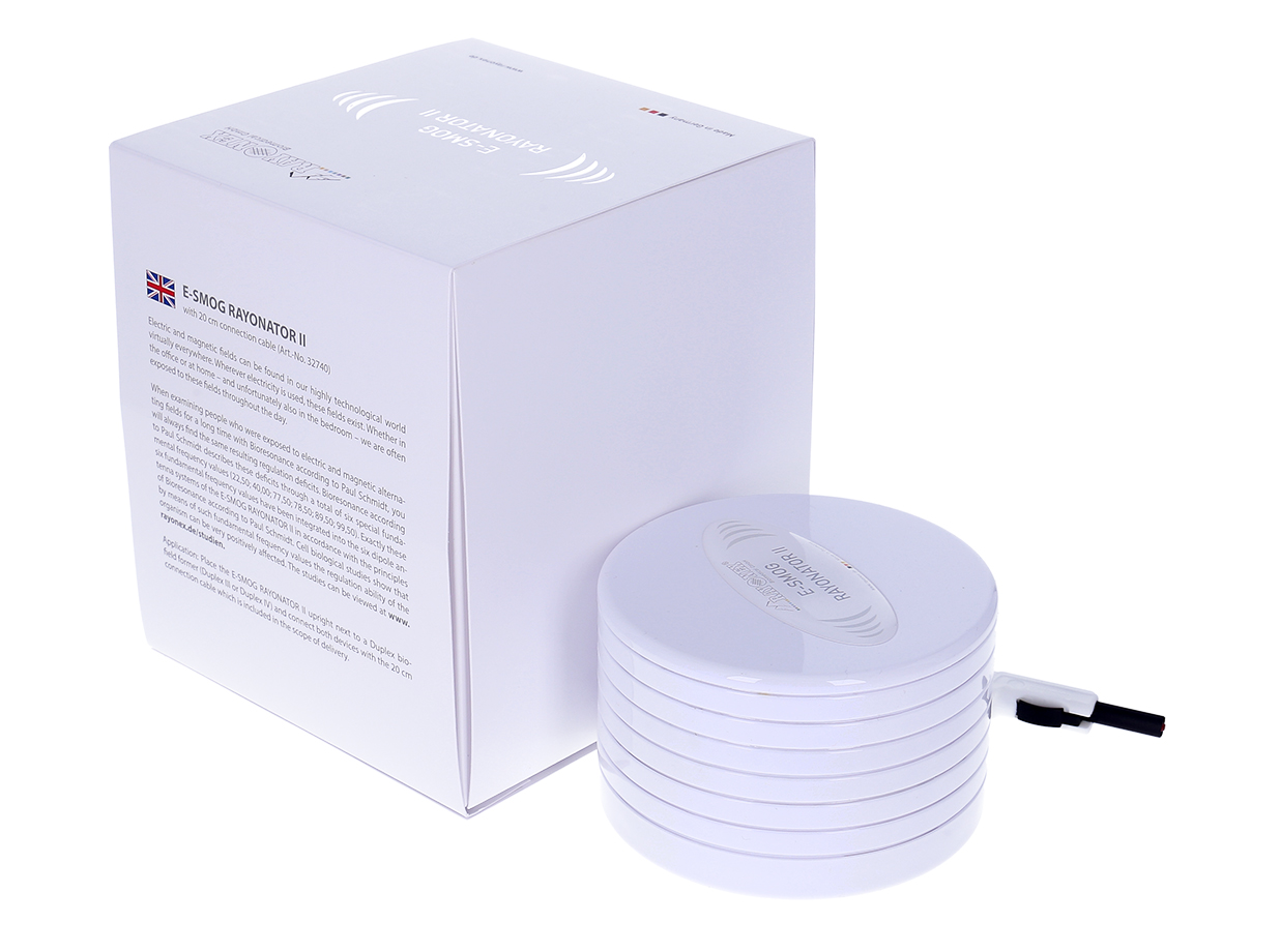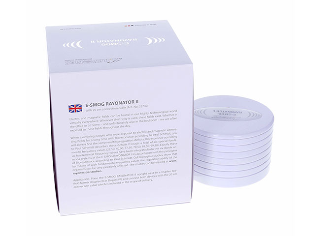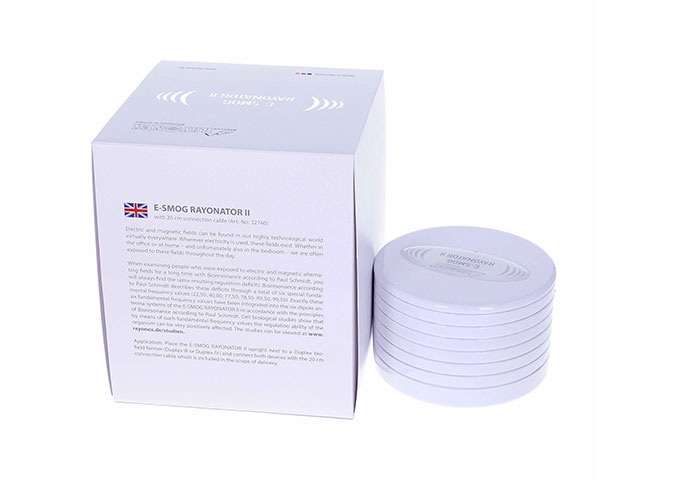 使用保罗施密特生物能反馈系统来检测长期暴露在交流电磁场中的人或动物时,总会发现同样的调节失常结果。保罗施密特生物能反馈系统以6个特殊的基频值(22.50; 40.00; 77.50; 78.50; 89.50;99.50)来平衡这些失常。我们根据保罗施密特生物能反馈系统原理,将这6个基频值整合到“电磁辐射调和器II”的6个偶极天线系统中,以调节生物体内的这6个基频值。