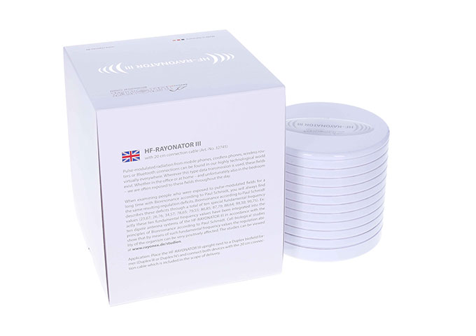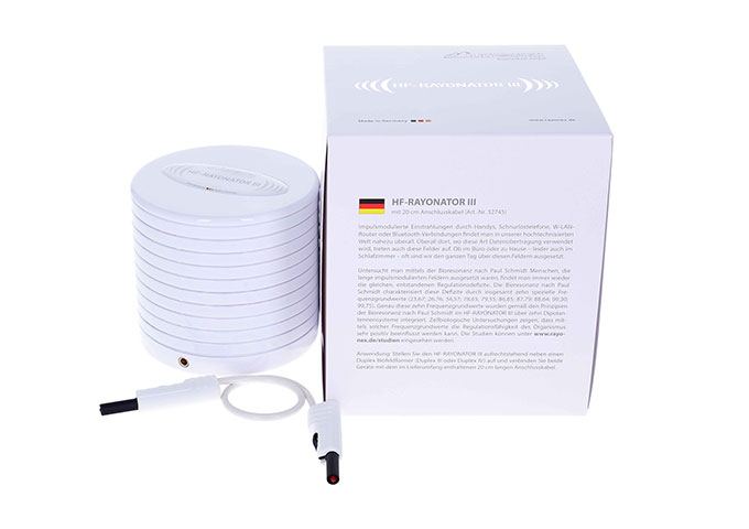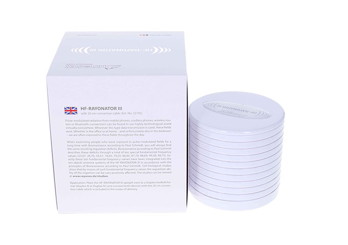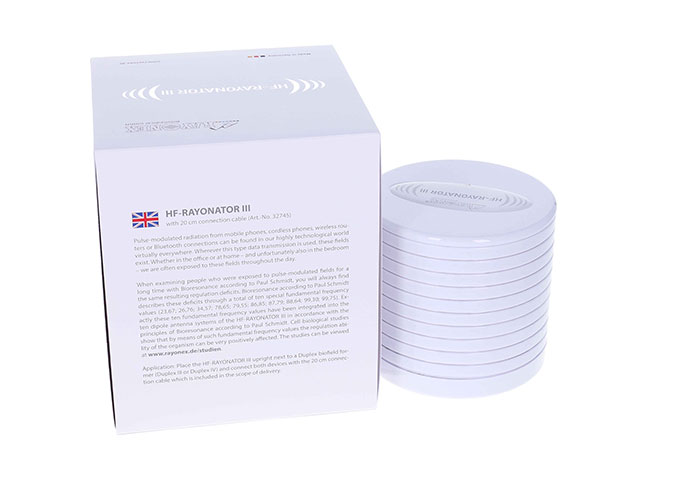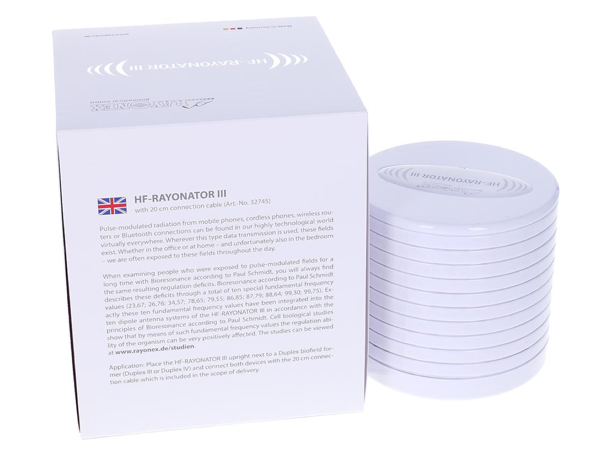 当我们用保罗施密特生物能反馈系统检测那些长期暴露于脉衝辐射的人时,总会发现同样的调节失常结果。保罗施密特生物能反馈系统以10个特殊的基频值(23.67; 26.76; 34.57; 78.65; 79.55; 86.85; 87.79; 88.64; 99.30; 99.75)来平衡这些失常。根据保罗施密特生物能反馈系统原理,将这10个基频值整合到“高频调和器III”的10个偶极天线系统中,以调节生物体内的这10个基频值。